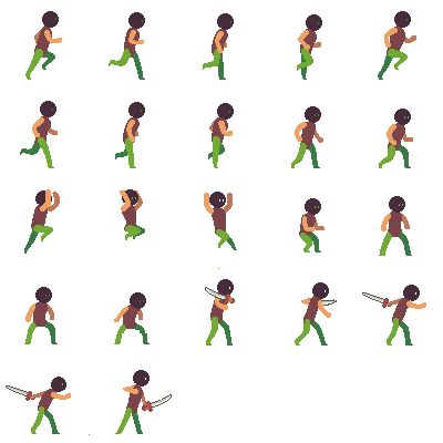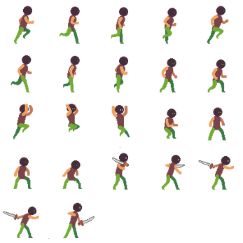 Este asset foi desenvolvido para uma comissiom com caracterização de um personagem, então resolvi aproveitar o modelo de animação e criar essa sprite sheet com algumas animações que você poderá usar como base para desenvolver seus próprios personagens.